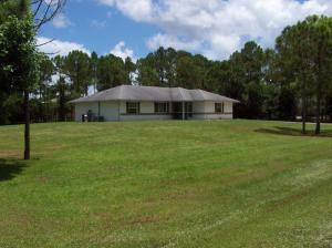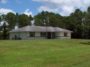 Nicely kept original owner home in terrific Acreage location. 1.15 ac lot, lots of pines and no pond. All appliances including washer and dryer. Split bedroom plan with large and roomy master suite with dressing area and walk in closet. Vaulted ceilings, extra storage cabinets, open rear porch, room for future pool, screened front entry, full gutters on house, hurricane panels for all windows. A great value and priced to sell fast! With acceptable offer the owner will include Craftsman riding tractor and 1yr home warranty contract.