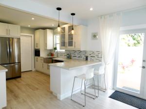 This is a masterfully updated turnkey single story 3 bedroom, 2 bathroom, single car garage home on a huge corner lot in East Boca Raton. Close to Mizner Park and only minutes from the beach. Open concept layout and spacious fenced-in backyard is perfect for entertaining and pets. NO HOA. EASY TO RENT OUT. Walking distance to the beach, fine dining, shopping and all the best of what East Boca has to offer! The house features brand new porcelain flooring throughout the house, LED recessed lighting in every room, brand new kitchen w/ smudge proof SS appliances and quartz maintenance free counter tops, and luxurious bathrooms. The house is move-in ready.