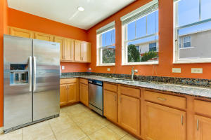 Spacious 3 story unit with one bedroom on the first floor and two on the third floor. GREAT POTENTIAL AS A RENTAL PROPERTY. The large kitchen has granite counters and plenty of cabinets. Upgraded tile throughout the whole second floor. The A/C and air handler were replaced in 2015, the refrigerator, washer and dryer are 3 years old, the dishwasher and microwave are 2 years old and the garbage disposal was just replaced. Impact windows throughout. Maintenance fees include internet, cable, water & sewer. The community offers numerous amenities including a lakefront pool, clubhouse, bbq area, gym with fitness instructor, yoga instructor, jogging track, movie theater and 24 hour manned gate & roving patrol. Great West Palm Beach location. Per HOA, pitbulls or aggressive breads