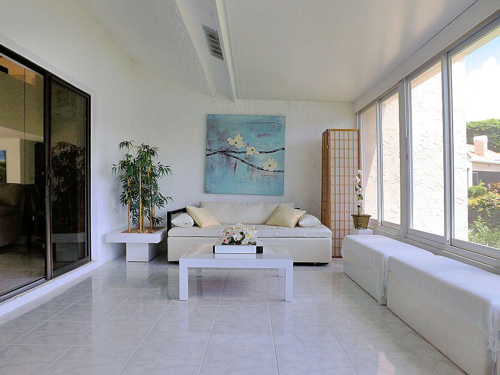 Location! Location! Location! Best wide panoramic lake views. Light and bright 3 bedrooms, 3 bathrooms. Large tile throughout living area, carpet in master and guest bedrooms. Additional 500 sq. ft. wrap around enclosed four season garden room with spectacular lake views that can be seen and accessed from living room as well as the kitchen. Additional balcony off the master suite to sit outside and enjoy lake view. Redone kitchen with new oven. Dishwasher and refrigerator replaced approximately 5 years ago. High ceilings, crown molding, and new baseboards. Large walk in closets in all bedrooms. There is one bedroom downstairs and 2 upstairs. A/C approximately 8 years old. This townhome has a wonderful use of space and is in wonderful condition.