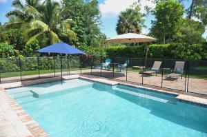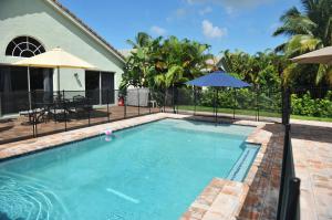 What a gem! This home is beautiful with wood floors throughout, 6'' baseboards, travertine in kitchen, new stainless steel appliances, new A/C, upgrades in bathrooms, built-ins in closets, vaulted ceiling, freshly painted exterior, brand new 15' x 28' pool with 10 foot swim out bench and safety fence, huge patio, 7 person hot tub, completely fenced in backyard complimented with privacy hedge, herb garden, fruit trees, and lush landscaping.