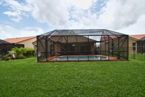 BEAUTIFULLY DECORATED HOME, BUYERS' DREAM, TILE ROOF EXCELLENT CONDITION, ACCORDION HURRICANE SHUTTERS AROUND THE HOUSE, NEW 5 TON RHEEM A/C. MARBLE FLOORS, NEW WOOD CABINETS, STAINLESS STEEL APPLIANCES,GRANITE COUNTER TOPS, WINE COOLER, UPGRADED BATHROOM, BAR IN LIVING ROOM AND SEPERATE BREAKFAST ROOM. FAMILY AND LIVING ROOMS FACING THE IN-GROUND HEATED POOL. HIGH CEILINGS ALLOW BRIGHT SUNSHINE THROUGHOUT THE HOUSE.GATED COMMUNITY, 2 POOLS, GYM, RENOVATED CLUB HOUSE FOR YOUR ENJOYMENT.FIBER OPTIC TV CABLE AND INTERNET PACKAGE INCLUDED IN MAINTENANCE. NEAR SHOPS, RESTAURANTS, BANKS AND TURNPIKE