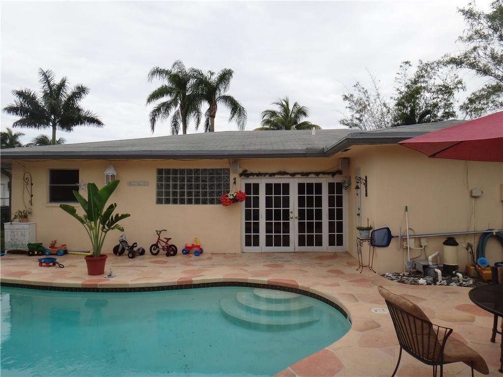 Lovely upgraded home in the well maintained, family neighborhood of Palm-Aire Village. 3 bedrooms and a den, 2 baths, 1 car garage. Completely fenced-in back yard has pool, large patio area, and you still have plenty of grassy area for your kids and pets to run and play! Open and spacious kitchen has granite counters, stainless appliances and modern hardwood cabinets. Large master bedroom has very large walk-in closet, a dream! Split floor plan with cabana bath. Easy access to 95 & turnpike.