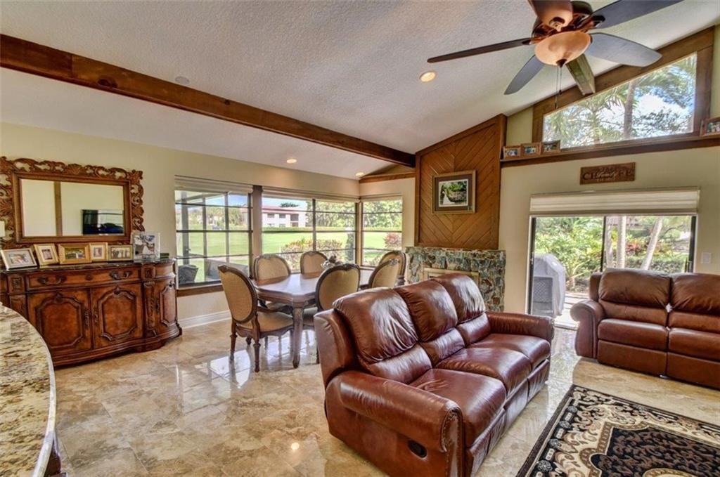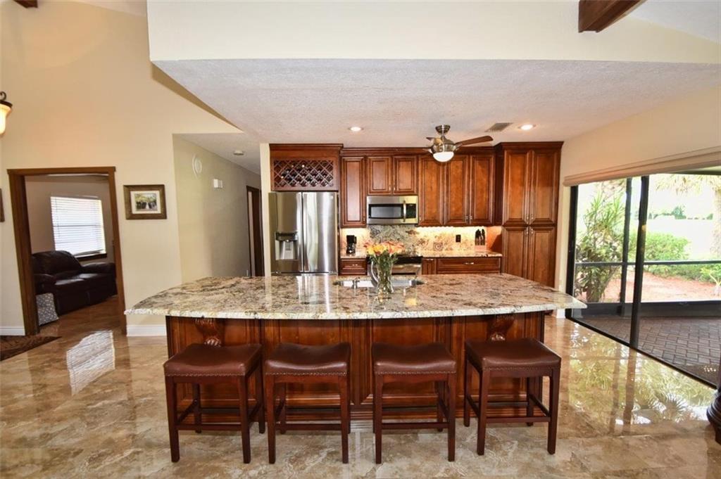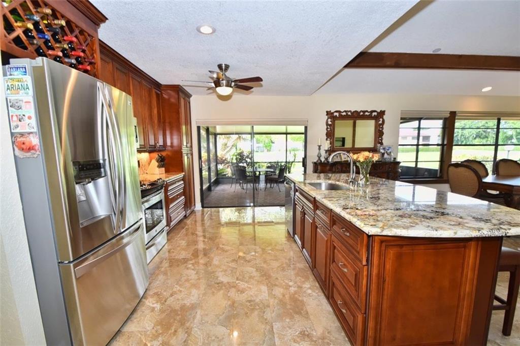 This remodeled cul-de-sac home is situated on a great lot in Escondido. Porcelain tile throughout open concept living space adds class to the kitchen which spares no expense. Elite SS applncs, pullouts, & a lrg granite island with lots of counter space. The granite flows into backsplash/baths/bar. Custom HunterDouglas blinds compliment the fireplace/wood beams. Enjoy golf course views on the covered screend patio. This family friendly home is mins from the T'pike. 24HR manned guard gate, A+schools