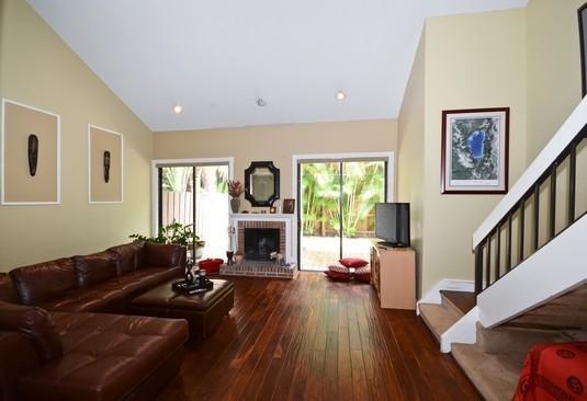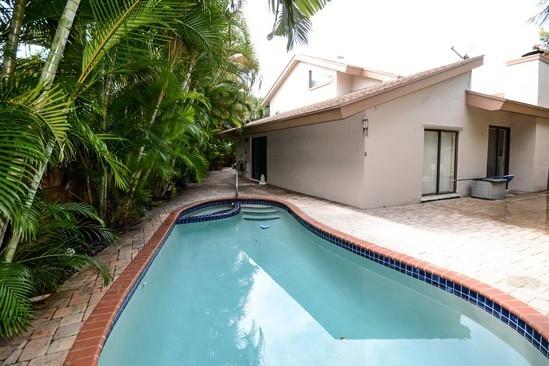 Great 2 story townhouse with its own Pool, Lushly landscaped courtyard affords privacy and great for entertaining. End Unit on Cul-de-sac Updated with stacked stone front and paver driveway with 2 car garage. Large Updated eat-in Kitchen, granite countertops. Wood floors in Living area. Master bedroom downstairs, 2 bedroom and large loft area upstairs. Balcony off the 2nd and 3rd bedrooms over looks courtyard. High volume ceilings in oversized living room with working fireplace. Sought after Boca Del Mar location, walk to Worship and Del Prado Elementary.
