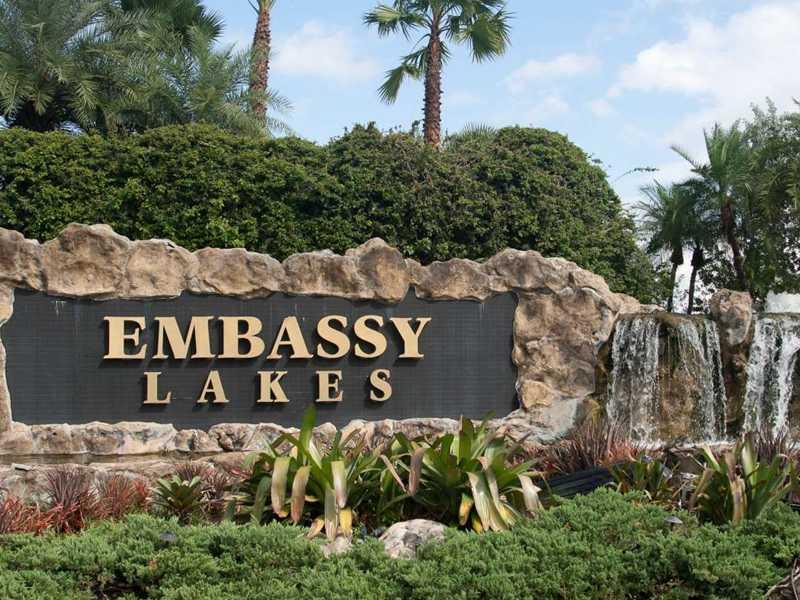**PROPERTY PHOTOGRAPHS ARE COPYRIGHT. UNAUTHORIZED USE IS PROHIBITED** Beautiful 4 bedroom twin home in Embassy Lakes - Regents Park. Loaded with upgrades included remodeled kitchen with granite counters & pickled oak cabinets w/ self-closing drawers. T he stall shower has beautiful new tile & frameless glass enclosure plus 6 shower heads! A new flat tile roof was installed after hurricane Wilma. Other features include accordion shutters, laminate & tile flooring, and French doors.