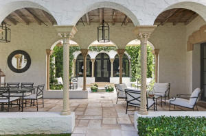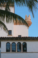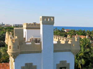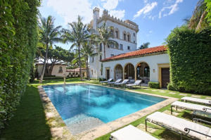 One of the most spectacular homes ever offered in Palm Beach that perfectly combines original classic architectural with all of the amenities of a modern estate. Located on the of the famed 3 ''El'' streets just steps south of Worth Ave. The Main Tower is 5 stories tall and encompasses two master bedrooms, one of which spans the entire 3rd floor of the house, a library and bar with ocean to lake views, a roof top observation deck and bar, and a living room with the original rare Cuban tile floors (black and blue), walk-in fire place mantel, and cypress beams & ceiling with stenciling. The entire house has been updated with custom hurricane impact doors & windows, new bathrooms, Smart lighting system, and a kitchen that opens to a casual eating area and family room. The gardens were