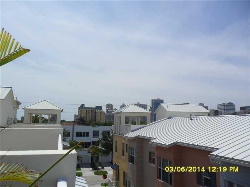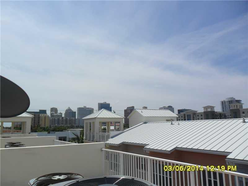New carpet and freshly painted. Tri-level townhouse with 522 square foot roof-top terrace. Endless views to the beaches and downtown skyline. Two bedroom plus an office and three and a half baths. Lots of natural light in the kitchen and living area. Nat ural gas stove too. Dual AC system and a security system. Two car garage. The Ellington is a gated complex and has a heated pool. No pet restrictions. Maintenance includes insurance and water. Walk to Victoria Park Shoppes and Las Olas.