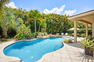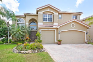 This beautiful home has 5 bedrooms+loft,3 baths and 3 car garage.Features include accordion hurricane shutters,tile installed on the diagonal with marble design in foyer,two-story ceilings and box style drywall relief in living room and dining room,rounded corner bead,plantation shutters,and new carpet on stairs and entire second floor.Fans and hi-hats throughout the home.The gourmet kitchen features wood glazed cabinets with crown moldings,bump-out at cooktop,cooktop drawers,granite countertops,center island and breakfast nook with bay window.The family room has surround sound.Second floor master suite has sitting area,walk-in closets and master bath with jetted tub.The lushly landscaped backyard ''resort'' features an oversized patio,heated salt water pool and spa with rock waterfall.