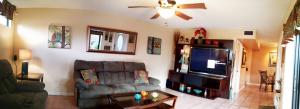 Lovely townhome, with beautiful new kitchen and appliances. Granite counters with an under mount sink, open pass through to dining area for easy entertaining. Solid wood cabinets with lots of extra storage space.There is a front load washer and dryer on the first floor, tucked away with a convenient half bath on the first floor.Private courtyard with lots of room for your outdoor barbeque. There is tile throughout the home, and upgraded fan lights are tastefully chosen to go with each room. There is a new roof, all new impact windows & 4 sets of sliding glass doors that are impact resistant. Both bedrooms are upstairs and have sliding glass doors that open to a shared balcony. The Master bedroom has a large walk in closet and private bath with Jacuzzi tub.