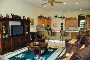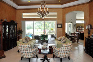 Large and elegant 4248 sq.ft. living space (total 5928 sf) home in all one acre lot, golf course community (membership optional) that has it all to include: large living and family rooms, den, media room with high-end technology and elaborate furnishings, four large bedrooms (master is exquisite) three and one half baths, kitchen with all new stainless appliances, oversize screened pool/spa/patio area overlooking golf course and lakes. Circular paver driveway and lush landscaping compliments this home. A must see home to take it all in and appreciate this value offering!! (One quarter HOA contribution of $570 due at closing. All measurements approximate)