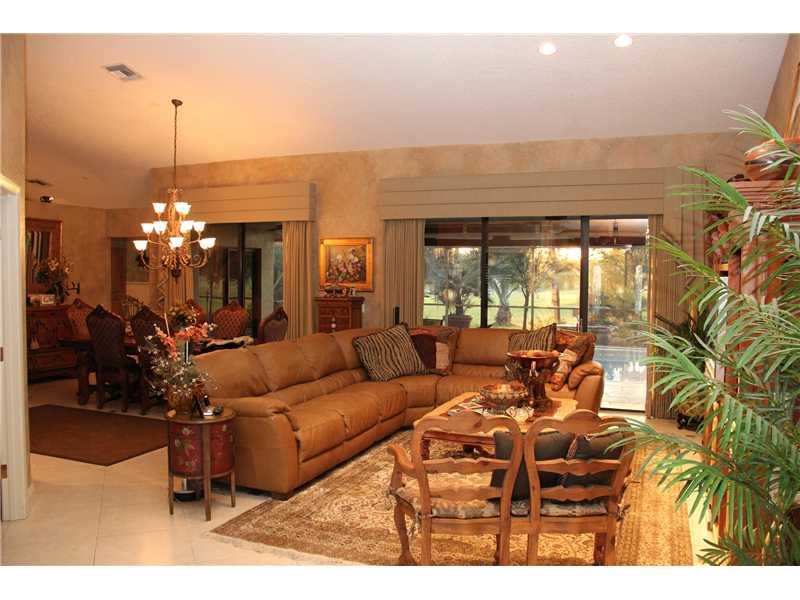 3/2 Turn Key master piece SFH located on Lakes course 2nd hole. Interior property feat. include: Diag. tile throughout, Custom wood kitchen/granite, Sub-Zero Refrigerator, wine chiller, new LG wash-dryer w/base, high ceilings w/knock down finish, custom p ainted interior, custom draperies & closed circuit cameras throughout. Ext. features include: Newer S-tile roof, mahogany over sized front doors, lg. stamped driveway, new A/C, 16ft retract pool shade, $25k IN landscape lighting & storm shutters. + more.