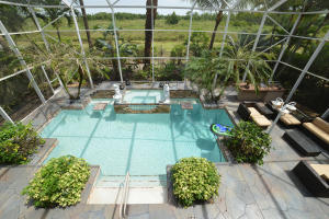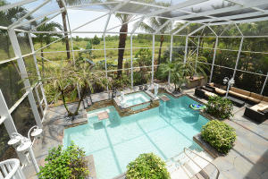 Resort Home with a fabulous 2 story screened salt water pool and Deco Stoneentertainment area. New Gas heater. The outside spiral staircase is to the master bedroom deck overlooking the pool area. There is 1st floor access from the dining room and family room to pool. First floor den can be used as 5th bedroom. It is graced with glass French doors and built ins. This home is very generous in it's size and layout. The curves of the grand stair case steal you away to comfort and privacy. Fabulous master bedroom has sitting room and gorgeous bath with great built in closets. The views from the MB are breath taking. Hurricane attached shutters, central vac. Excellent Schools across from Saturnia entrance. Beautiful club house with tennis,resort pool,work out facility, kids area, clubroom.