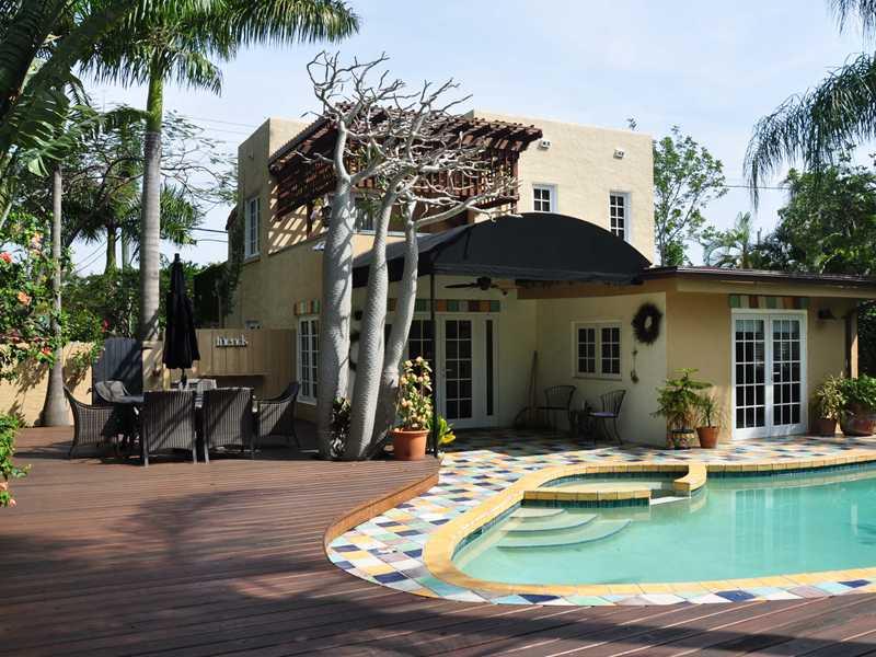 Beautifully updated vintage home in Victoria Park. Arched doorways, crown molding, impact windows & doors, new plumbing & electric, hardwood floors, wood burning pass thru fireplace and a hand carved Mahogany front door. Kitchen features farmhouse sink, s tainless appliances & brick accents. All baths updated. Exterior features Italian tile patio, freeform pool, wood decking, walled yard, auto sprinkler sys, shed, 2 a/c units and gas generator. Relax on the upper deck off the master, overlooking the pool!