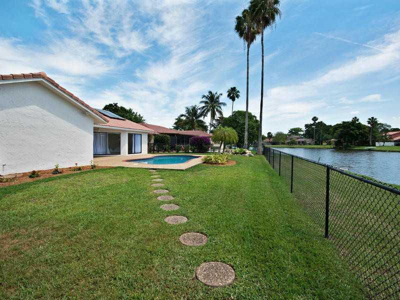 Gorgeous home located on a wide lagoon with a desired north-south exposure. All new appliances, Diamond Bright pool, nicely landscaped, kitchen & baths redone. New knock-down ceilings w/crown molding, recessed lighting in main areas. Perlato Crema porcela in tile on a diagonal throughout the home (except bedrooms), 120 gal solar water heater, in-ground safe. Excellent schools just a mile & half in proximity. Minutes to all major highways, malls, restaurants & medical facilities. Move in ready!