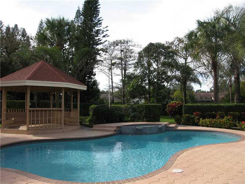 Beautiful 1 acre estate! Heated pool & raised spa w/ gazebo. Master bdrm w/ sitting/exercise area, 2 walk-in closets, & huge master bath! 5th bdrm/study features laminate floors(no closet)w/ full cabana bathroom across hall. Wood burning fireplace & wet b ar in family rm w/icemaker & refrig. Generator, French doors, crown moldings, Plantation shutters. Tile roof replaced 11/2006. Covered screened patio w/BBQ grill & wet bar. Huge kitchen w/ center island, double ovens, Corian tops! Accordion shutters!