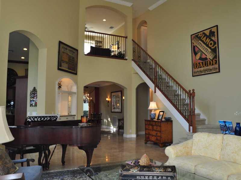 Stunning Lakefront Mediterranean Estate Home in Upscale Guard Gated Ternbridge Estates. This home is light/ bright and tastefully decorated!! Offerings include 7 bedrooms, 5.5 baths and 4 car garage. Great floor plan with a huge master suite and guest ro om on the first floor. 2nd level offers,4 bdrms w/baths en suite and a loft/den. The living room is impressive with soaring windows, a grand staircase, fireplace, bar and saturnia marble floors. Peaceful views of the tropical pool area and lake