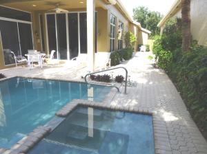 MAJOR $20,000 PRICE REDUCTION! Beautiful mint condition upgraded & enlarged pool home in a tranquil & tropical private setting. High ceilings. Quality through-out. The guest bathroom was redesigned to provide access from the second bedroom as well as from the hall. The patio was enclosed with hurricane sliders to make a TV/sitting room with surround sound and offers additional space for entertaining. The covered patio overlooks the heated pool and spa, redone in 2011/2012. The indoor laundry room has a sink. Most furniture is available for sale. Enjoy the Banyans community pool as well as all of the wonderful amenities of Broken Sound Country Club...fitness center, resort style pool, tennis, golf, spa, dining and more. Assoc club memberships are available starting at $40,000 for ages 30-39