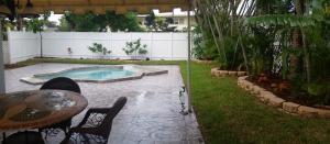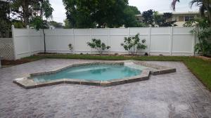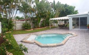 Beautiful east Boca pool home situated on a oversized corner lot, only 1 mile from the beach! This property features 2 bedrooms and 2 baths with room for a third, expansive open living areas, large laundry room, granite in the bathroom and tile flooring throughout, updated open kitchen with brand new stainless steel appliances, single car garage with 5 car concrete poured driveway. The backyard is perfect for entertaining with mature landscaping, decking around the pool and covered patio, freshly mulched flowerbeds, new sprinklers and new sod, it has space for anything you need. It has a poured slab for a shed or extra patio, double wide gate for a boat, RV or any of your toys. No HOA! Close to 95, great shopping, Mizner Park and great Boca Raton Schools. This property is a must s
