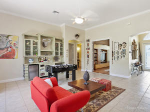 Enjoy Florida living in this Mediterranean styled home at Ironhorse Country Club, which offers 24/7 manned gated security. The full service club (membership not mandatory) includes all of the amenities for a perfect lifestyle. A glass double door entry invites you into this 4 Bedroom plus media room 4.5 Bathroom 3 Car Garage home. The Kitchen with eat-in area is open to the Family Room with custom built-in library and features stainless steel appliances, granite counter tops a large center island and a pantry. Enjoy a formal dinner with family and friends in the formal Dining Room The Master Bedroom suite is enhanced with wood flooring a large his and hers master bath including dual sinks separate walk in shower and tub. Relax outside in the screened patio overlooking large back yard