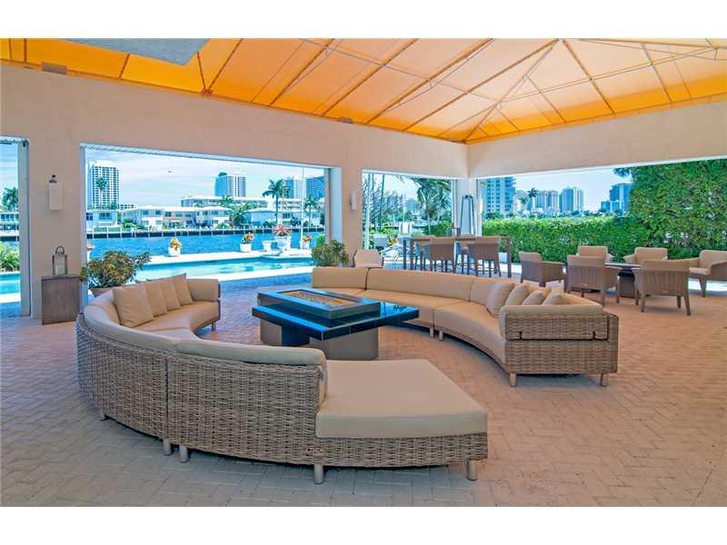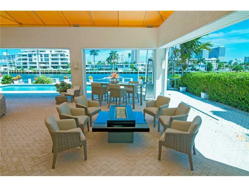 Modern waterfront pool residence w/ Art Deco features in exclusive gated & patrolled Sunrise Intracoastal w/ 100' on Intracoastal.100'x165' lot. Main house: large 2 BR - 2.5 bath + private guest quarters. Modern kitchen w/ custom Downsview cabinetry, Gagg enau & Subzero appliances. Master BR overlooks pool/east. Spa like master bath. Granite, restored wood floors & tiles. Spacious covered 1,500+ sq.ft. patio for several seating areas to entertain your guests. 2 CG + 7 spots. Florida lifestyle at its best!