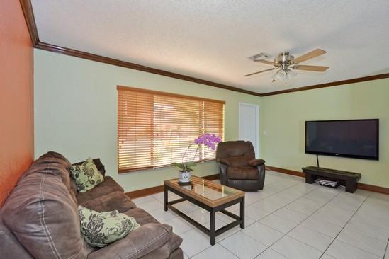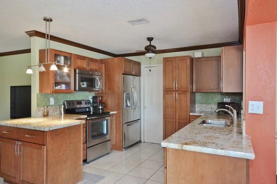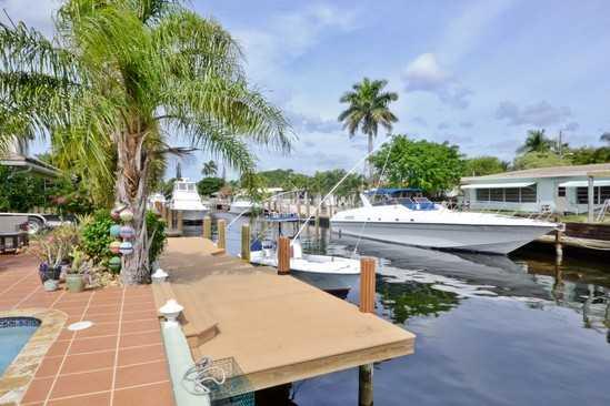 BOATER'S DREAM! This beautifully renovated deep water pool home is located minutes from the Intracoastal,can accommodate a 75 ft. boat & features new: gourmet kitchen w/ wood cabs,granite counters,glass tile backsplash & SS appliances; full bath w/ custo m vanity, lights & tile inlays; composite wood dock,textured pool deck; outdoor lighting,sprinkler system; impact french doors,crown molding, baseboards,& doors;freshly painted interior & exterior; AC; electric;resurfaced pool & marble tiles & much more.