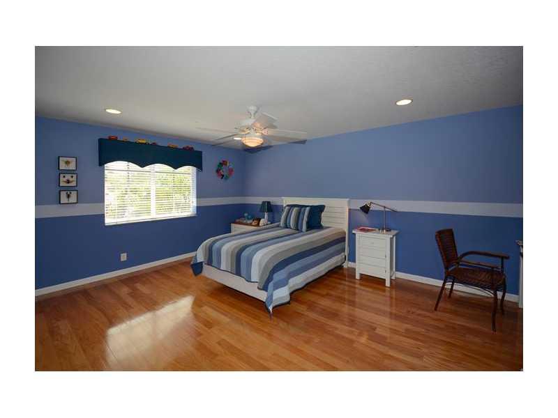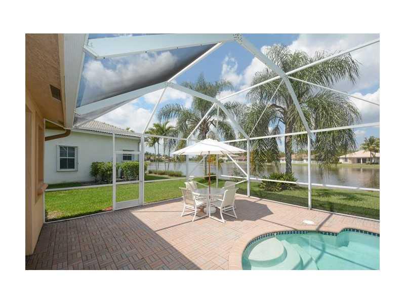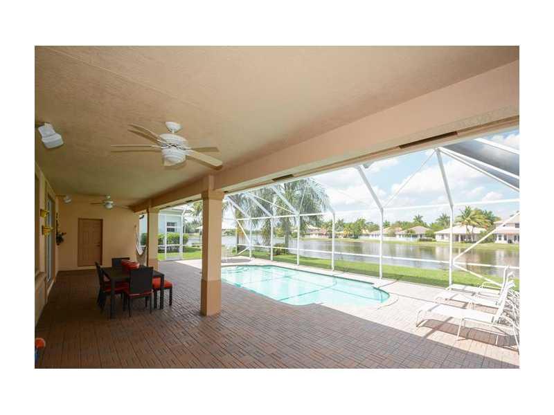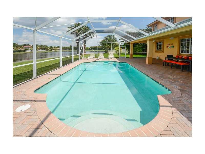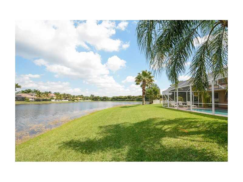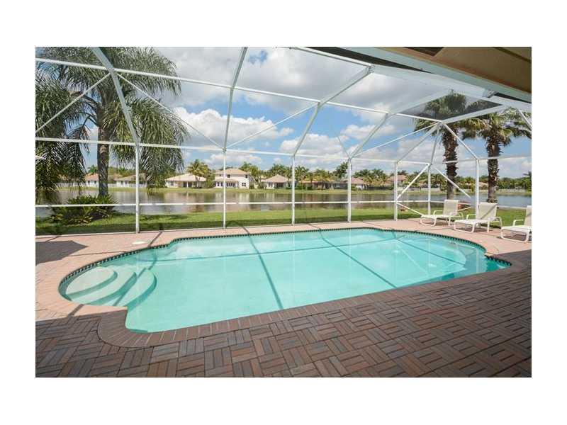 What a fabulous location! Over sized waterfront lot on cul-de-sac in Weston Hills. Gorgeous Nightingale model with 5 bedrooms, MEDIA ROOM & 6 full baths. Immaculate! White kitchen with 42" cabinets. Tile on the 1st floor, real hardwood on stairs & 2nd level. Master suite with sitting area. Versatile floor plan with 1 bedroom & full bath on 1st floor. Screened patio & pool overlooking long lake views. Cabana bath. Gorgeous tropical landscaping. Walking distance to park. Weston A rated schools.