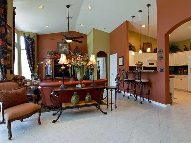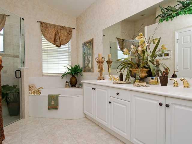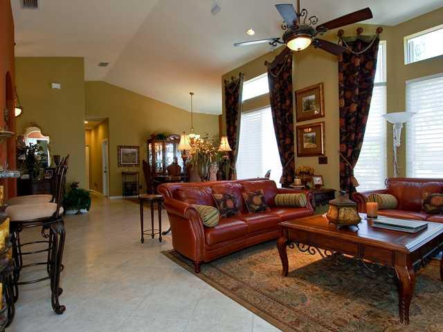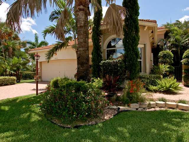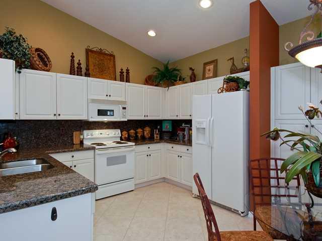 WATERFRONT ! Large Corner lot! Pristine 3/2.5 in Model condition. Kitchen with Granite counters & back splash. Diagonally set neutral tile. Designer lighting . Sound system. Built in closets throughout. Upgraded FULL Guest bath. Office has wood floor. Acc ordion storm shutters & storm film on windows. Maytag washer & dryer. Pull-down stairs in 2 car garage. Lush landscaping with lighting! Furniture negotiable. Guard-Gated. Resort style neighborhood !