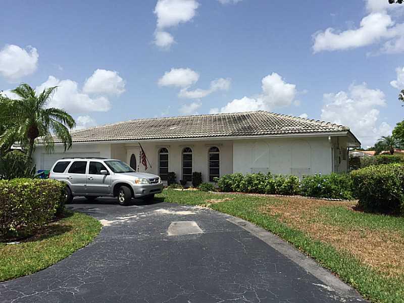 Beautiful home in Coral Springs Country Club West. 5 bedrooms, 2 car garage, on canal with a fenced yard and pool. Remodeled kitchen and bath. Just painted & new neutral carpeting. split bedroom plan, hurricane panels, circular driveway. Some handicap f eatures. Covered patio with fan. Note sqft as per tax roll. AS_IS. Fha Va Ok! Owner wants offers!