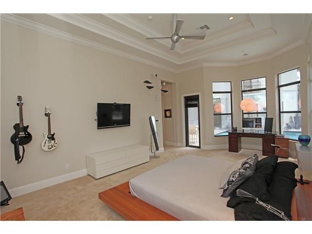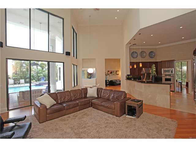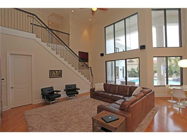 The home you've been waiting for! Stunning contemporary 5bd/5.5bth 3cg courtyard located on an oversized cul de sac lot. Soaring 20 ft ceilings in main areas w/huge spans of glass opening to fountain views. Solid wood floors, chef's kitchen, ss appliances , double ovens, & 48" refrid. Granite & crown moldings. Built in aquarium in foyer. Huge pool & spa area w/summer kitchen. Media rm/playrm & 3bd/3bths upstairs & separate guest house. Designer lighting and room for a swing set.