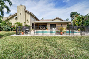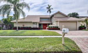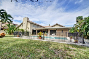 This home offers polished contemporary style, an open floor plan, lake views & spacious pool & patio area. There's brick pavers on drive & beautifully landscaped entry. Enter through double doors to large center hall, formal living room & dining rooms w/ wood parquet floors. The beautifully renovated kitchen has granite counters, wood cabinetry & stainless appliances, opening to the generous family room with working fireplace, cedar paneled vaulted ceilings & neutral tile floors. All overlooking pool patio and lake. The generous master suite has lots of closets, a renovated luxury bath & lake views. There are 3 more bedrooms & 2 1/2 more baths.Wind Drift is ideally located close to shopping, dining, sports & cultural facilities,I95 & Bocas beautiful beaches. Zoned for Boca's best schoo