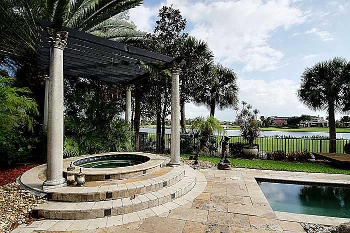 Panoramic Golf View of the Fairways, & lakeview 6 beds incl. Media, Office + 4 Full baths,+ 2-1/2 baths. Pool with Waterfall & Separate large heated Spa/Gazebo. Marble & Wood floors, Designer Kitchen w/Island Two dishwashers, Micro, cooktop, Sub Zero Re figerator, Dbl Ovens, Summer Kitchen. Designer Drapes & Chandeliers thru out. Formal Dining Designer wood Office, Custom Kitchen & Bath cabinets. Custom built Master closet.Salt Water Heated POOL, Wood staircase, Hurricane & Impact Windows & Doors MOTIVAD