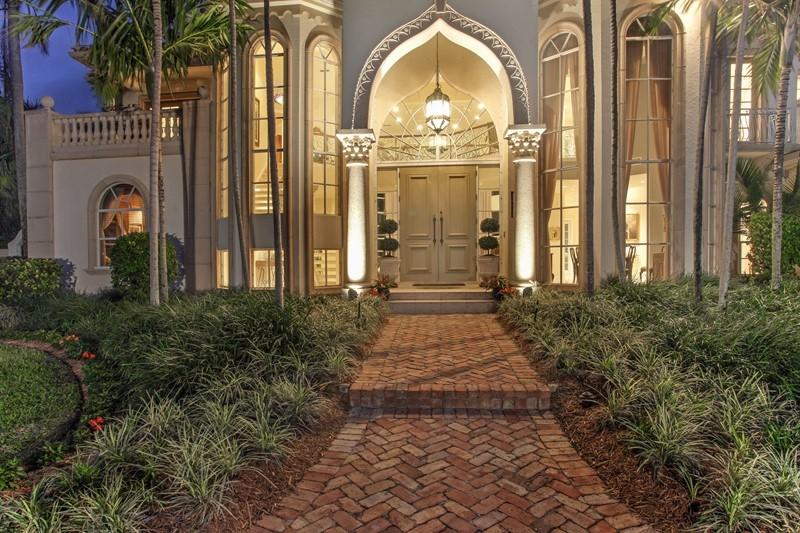 Beautiful Custom Built home located on a rare ''Double Waterfront'' gated street with a total of 300ft of deepwater. (150ft front and back) Features lovely architectural details w/ soaring ceilings w/ wall of glass to bring in beautiful light and views of the water from almost every room. Custom built-in library, media room, coral fireplace, large kitchen w/ granite, new Wolf & Sub-zero appliances, wine bar, sunny breakfast room, Extensive outdoor living w/80ft covered patio, 2 covered balconies, dining gazebo, summer kitchen, heated pool and spa, Lush landscaping, stone columns, old Chicago Brick drive and walkways, mosaics, and etched glass create a timeless charm. New Roof and Dockage for a huge Yacht! This is a True Boaters Paradise!!!Please View Virtual Tour it is BEAUTIFUL!