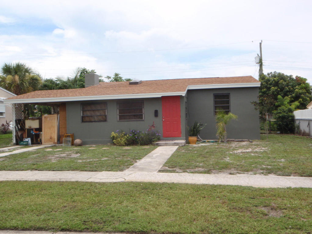 This cute mid-century CBS house was updated with a new roof, kitchen, and bathroom in 2005. There are knockdown ceilings and walls. Central Air and diagonally laid ceramic tile throughout. Skylight in living area. Inside space is bigger than Sq Ft suggests. Covered carport. Huge back yard with plenty of space for expansion and pool. Seller in process of clearing out house so interior pictures coming soon.