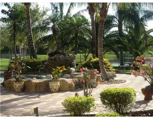 Unsurpassed elegant home in upscale guard-gated community. Travertine marble floors, granite counters, wood cabinets, Luxurious master suite & bathrms, Lge. Living & Family rms w/custm center & bamboo paddle fan. Designer details: Venetian walls, cust. dr apes, double-crown molding & tiffany lamps. Premium lot w/long,wide lake views, unrivaled sunset, lndscping, htd pool/spa, rock fountains, patio & Trop.garden. Crème d'marfil bthrm w/SpaTub, cabana bath, surround sound, freezer, Generator, Tractor Mwr!