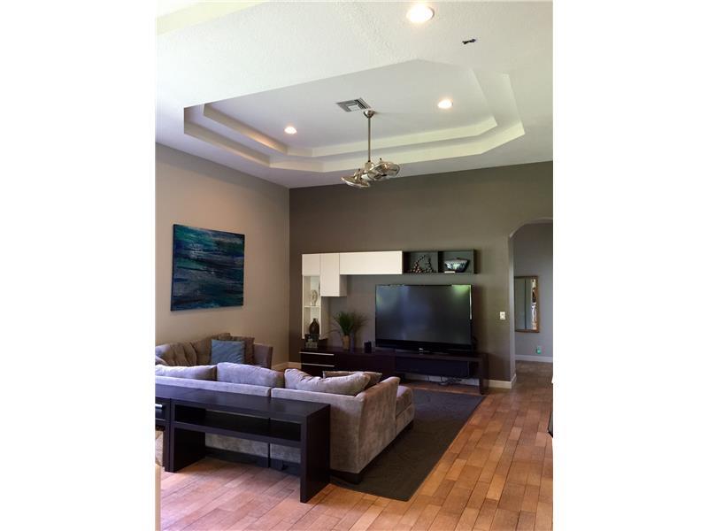 Absolutely Stunning Family Home with breathtaking outdoor scenery including view of the lake, two amazing tiki huts one completely set up for full entertainment, TV, sound, wet Bar, one for relaxation, or yoga, soccer field/putting green, fire pit, lush l andscaping, and definitely room for a pool, indoor beautifully maintained ready for your buyer to move in. Bright with spacious floor plan, game room in garage, day office, huge master, a must see to appreciate. All "A" Schools