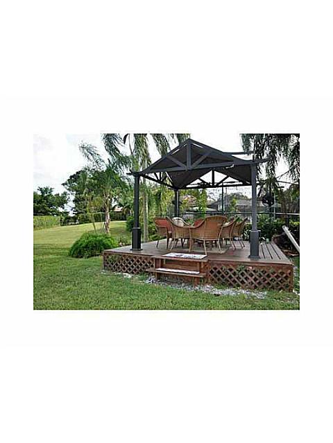 Private Resort Living: 5/4.5 estate home with three car garage, portico paver covered driveway. This beauty has Bamboo and tile floors, upgraded granite kitchen, crown molding, a study, wet bar, formal dining, separate living and family rooms. Exterior f eatures a private lighted tennis court, heated salt system Pebble Tech Pool, large screened patio with designer pavers, hedge and fenced yard, pet area or garden area. Premium neighborhood, magnificent yard 1.24 acres of privacy.