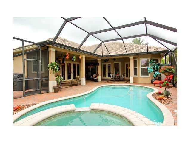 Immaculate Bayshore model in the Bayside Estates section of Parkland Isles. This is a 5 bedroom, 3 bath home with a screened in heated pool on the water. Custom window treatments. Built in unit with 250 gallon salt water fish tank. Crown molding. Central vacuum. Custom closets. French doors. Wood flooring in Master & Office. Built in bookshelves in office/5th bedroom. 3rd car garage is an extra office/playroom with A/C. Too many more upgrades to mention. Guard gated community with Clubhouse plus!