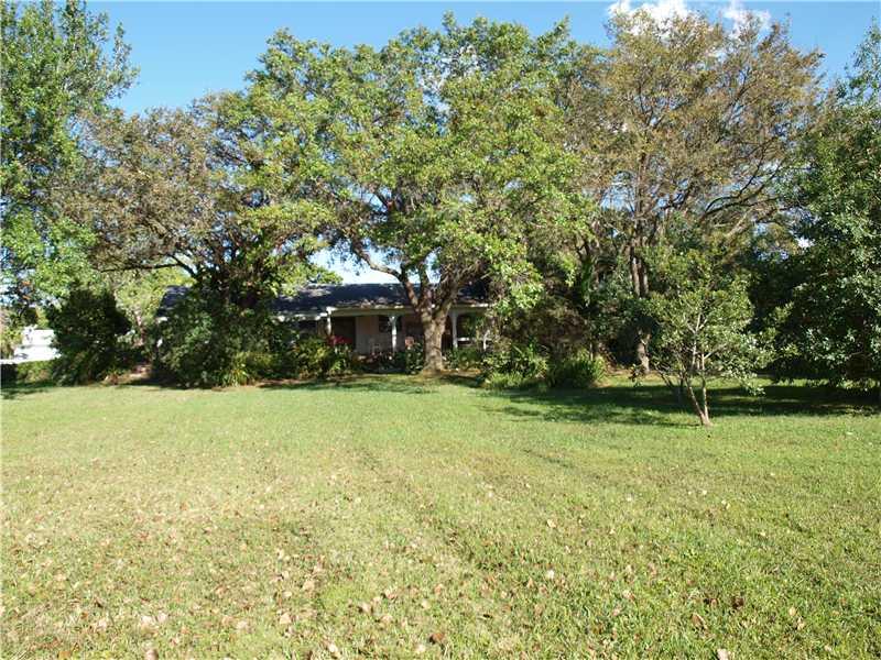 Country Ranch Estates home on 1 acre, 3 bedroom/2 bath with a wood burning fireplace in the living room. Kitchen has an island & breakfast area. Family room can be used as a playroom or office. Beautiful Mexican tile floors. Large Master bedroom w/2 clos ets. Most closets have organizer systems. over sized covered porch to enjoy the view of garden & canal. This property offers oak trees & mature landscaping, also includes 2 shade houses for orchids/plants. New AC unit in 2013. Great opportunity!