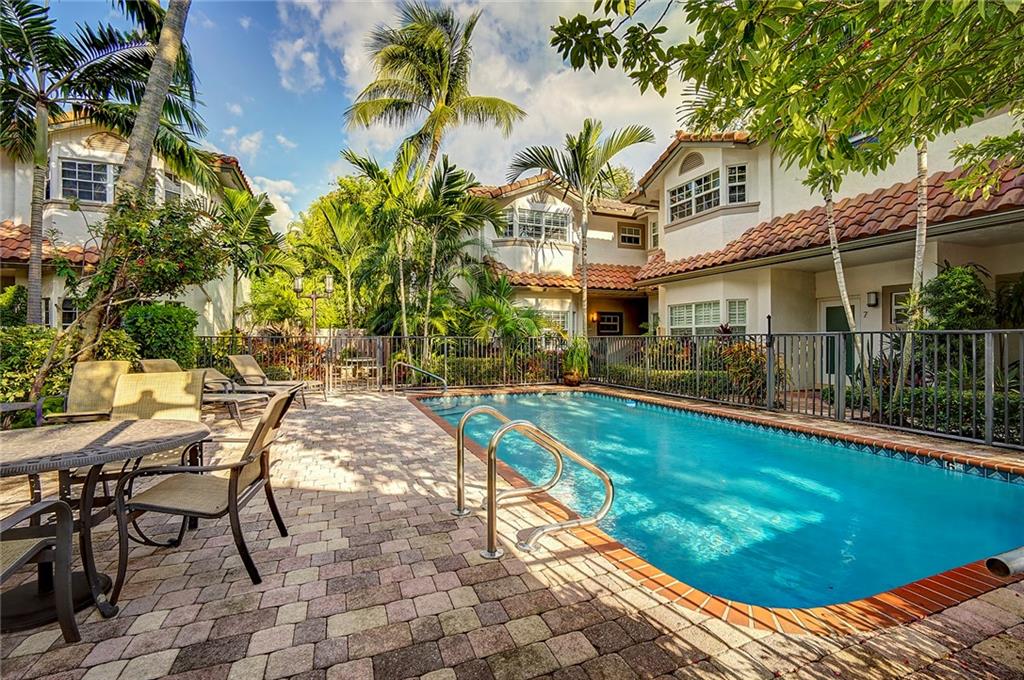Exceptionally priced, meticulously maintained 3 BR, 2.5 BA townhome in the heart of Victoria Park. Boutique gated complex w/ only 8 units which share a courtyard complete w/ a large pool, sitting areas & beautiful tropical landscaping. Notable features include magnificent Brazilian hardwood flooring, a completely updated kitchen and a private, fenced outdoor space w/ over-sized electronic awning. Noteworthy improvements: stone tile kitchen flooring, pro series ss apps, granite counters, tile back-splash, Plantation shutters, crown moldings, recessed & pendant lighting, ceiling fans, phantom screens, impact windows & much more. Upper level offers a spacious master suite w/ walk in closet, two additional bedrooms, a full bath bath and laundry area. Monthly fee covers many items of ownership.