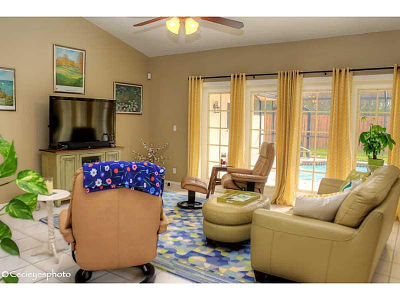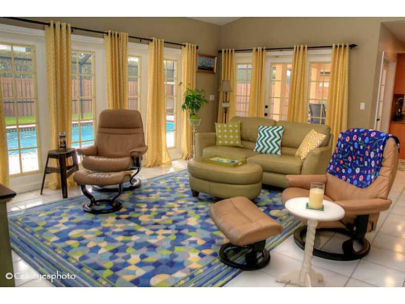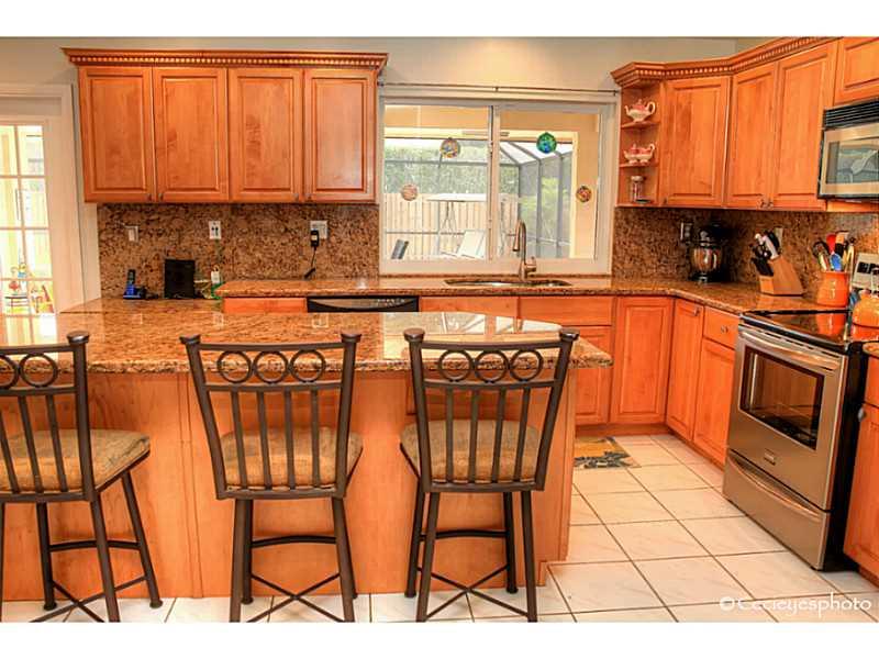 Transfer forces sale. Lovely home on corner fenced lot with pool under screened enclosure. Renovated kitchen with granite and stainless steel appliances. Guest bath and half bath have been renovated. White tile and wood laminate floors in bedroom. Ne w water heater and alarm system. Roof and HVAC have been upgraded. Hurricane impact windows on most windows. Built it book shelves. Light, bright and open floor plan. Very popular neighborhood with great schools. Minutes to shopping, dining& beaches