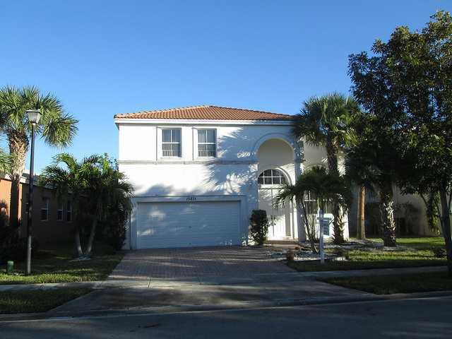 4 bed 3 bath 2 car garage two story single family, tile and carpet floors, gated community, eat in kitchen, breakfast bar, three bed 2 bath upstairs, one bed one bath downstairs, laundry room, family room, patio and backyard at Riviera Isles II in Miramar . Prequal letter required on all offers,