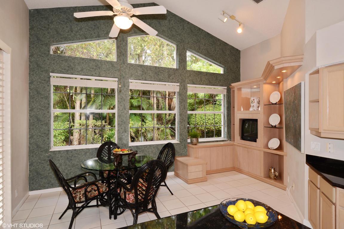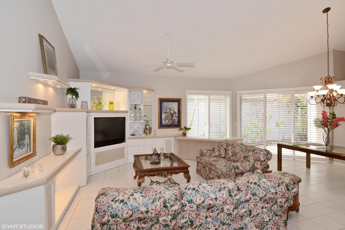 Great opportunity in Breakers West! No mandatory club memberships but they are available, if desired. Popular and spacious 1-story home w/3BR, 2.5 BA with over 2,000 AC living area. Vaulted ceilings & plantation shutters in Great Room. Lg Master BR opens to patio. Master BA has separate tub & shower. Dramatic windows in Kitchen & breakfast/family room overlook patio. Open and airy! Quiet location along golf course with brick paver patio. Roof replaced 2013. Breakers West is convenient to downtown WPB, Wellington equestrian amenities, PBI and lots of shopping conveniences.