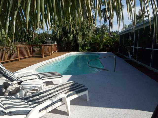 Boaters Delight. 65' Ocean Access Waterfront.NFB. Newer dock w/220 amp power-Preferred Eastern exposure! Updated 3 Br 2 Ba home w/ POOL. Key west design. Light,sunfilled, plenty of windows. Vaulted ceilings. Newer,Open kitchen w/breakfast bar,granite coun ters,maple cabinets,newer appliances. Huge screened Florida rm. Great Boating community. Yacht club membership can be purchased at very low cost. Central location-near downtown,Las Olas,Airport,all major Hwys, 2 parks nearby. Buy now-No hassle NO waiting!