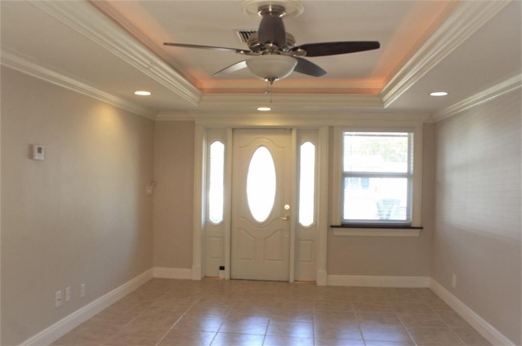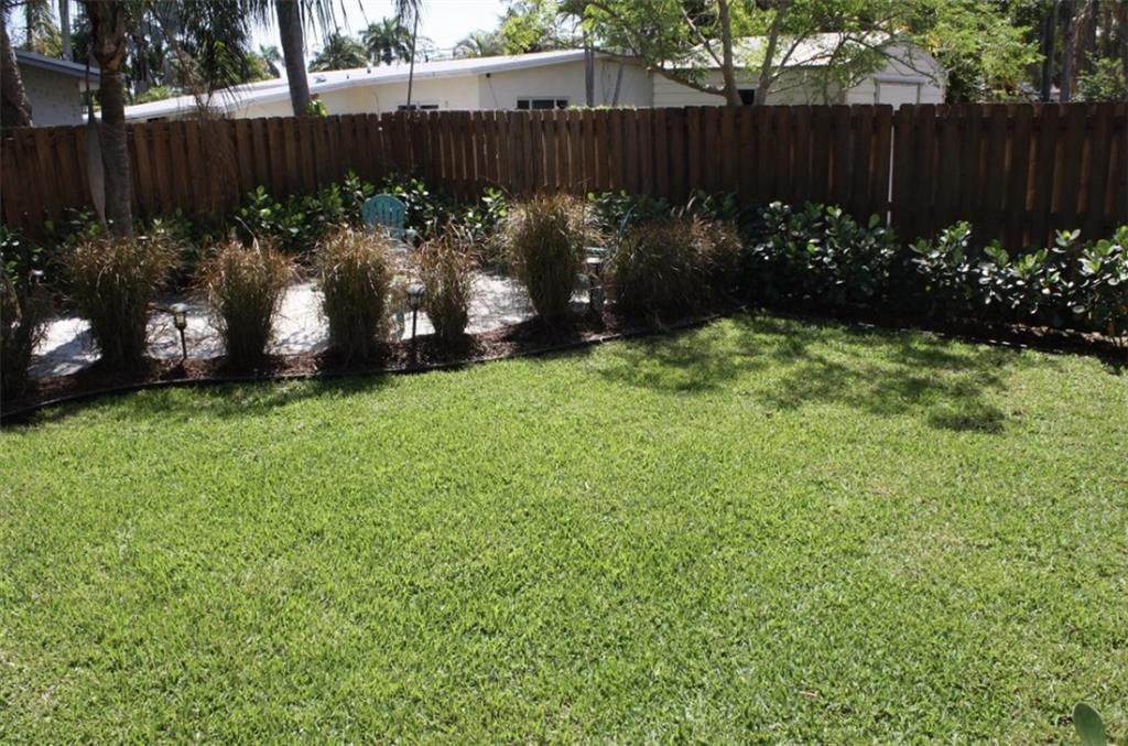 Tastefully remodeled 3/2 with all the amenities including stainless appliances,tile flooring, granit counters both kitchen and bathrooms. Extensive upgraded trim and crown moldings.Secluded master bedroom with Jacquzzi tub and frameless glass shower with double bowl sinks. A grand tropical back yard includes a large paver patio with a beautiful stone waterfall. A short walk down a natural stone path brings you to a secluded corner yard beach scene with white sand and a built in fire pit for a perfect entertain party. Underground 4 zone sprinklers for the luscious landscaping including drip lines under plant bases. Large lot slightly under 1/4 acre with mature trees.