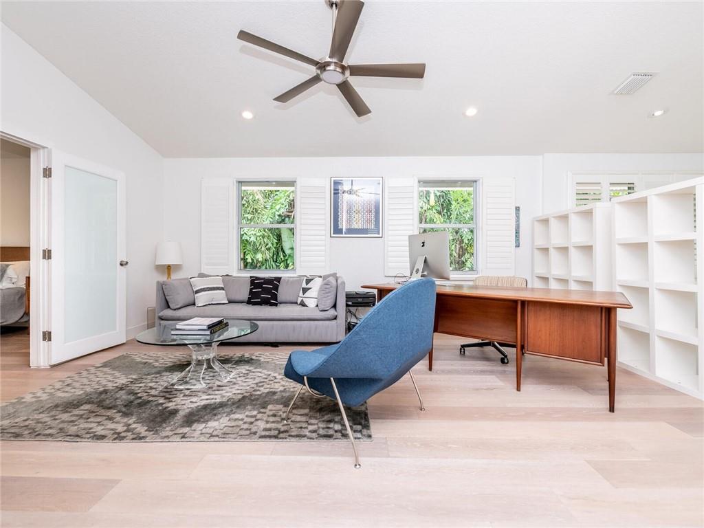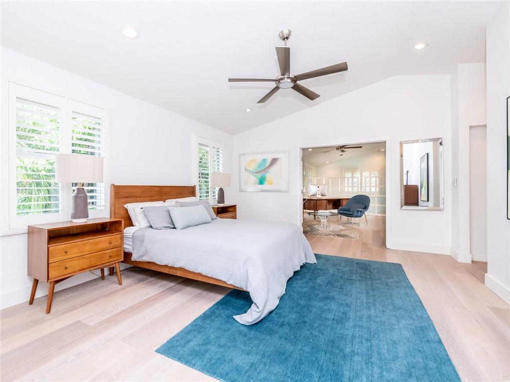 Gorgeous furnished 3 br + 2 large dens home for the times we are living in today's world. Key West tropical compound located on a secluded street right by Holiday Park offers a peaceful environment where you can work full time out of your home without any distractions. Owner spared no expense on craftmanship. Exceptional quality designs throughout. Iiron gates connect the front cottage to the 2 story residence featuring 10 ft ceilings, full Chef Kitchen,sliding impact doors overlooking lushly landscaped outdoor pool area. 2 master bedroom suites. Enormous loft with versatile use as a home office/media/zoom room & master suite w/balcony on second floor. The 900 sq ft fully equipped cottage includes 2 huge rooms. Ideal guest/full office/ home school separate from your home. Brand new roofs.