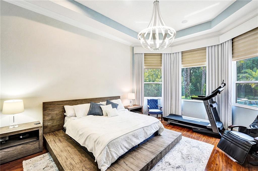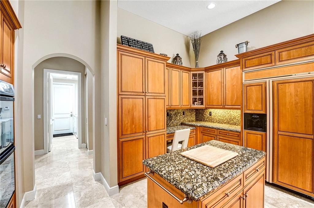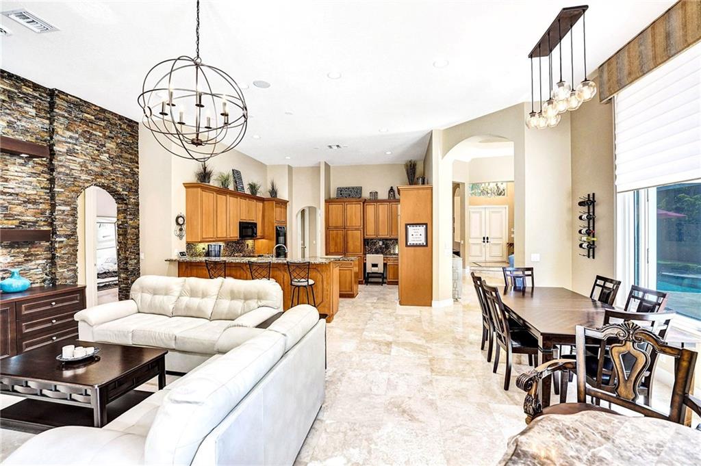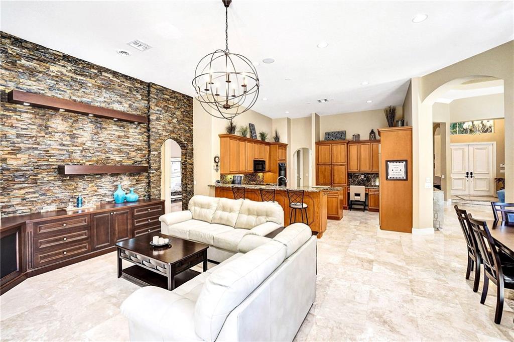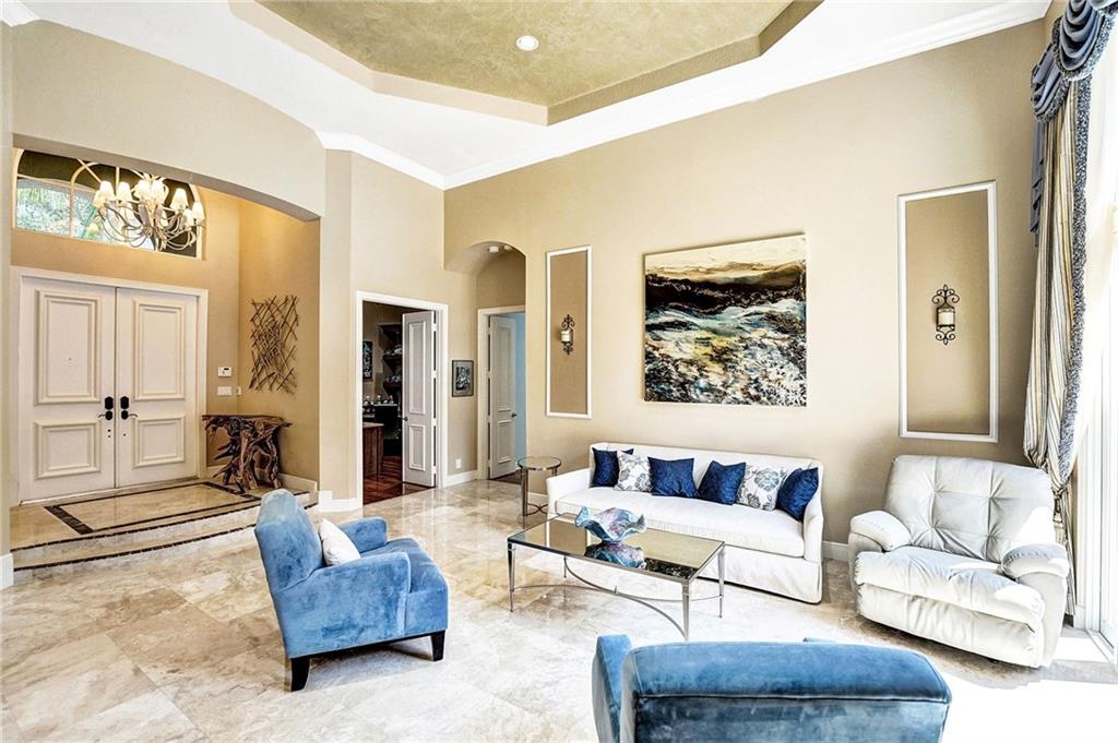 A sophisticated home in gated Ternbridge Estates, where sunlight filters through tree-lined streets, showcasing immaculate homes. French doors brighten the formal living & dining room, highlighting marble floors & elevated ceilings. Granite counters, double ovens & appliance panels concealing the refrigerator, create a high-end kitchen. The family room with stacked stone wall & casual dining area is enhanced by upgraded lighting. Each of the 4 bedrooms features premium laminate floors; and the master bath is stunningly spa-like, with a soaking tub & 2 vanities. A den gives the option for a home gym or playroom and the office offers built-in cabinets. Outdoors, a lanai connects to a large temperature-controlled pool & spa. Additional upgrades include hurricane impact windows and 2 AC units.