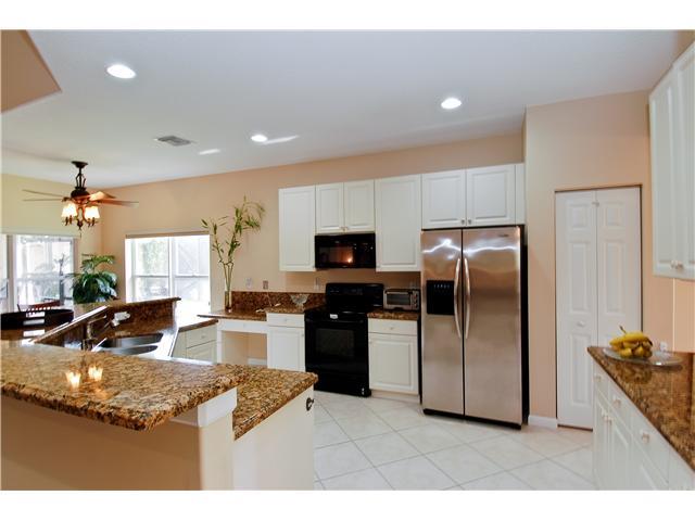 Guard gated entrance leads to this well maintained and highly upgraded 3 bedroom on interior lushly landscaped lot.Lifestyle community with clubhouse, exercise area and community pool. Kitchen offers tons of 42" cabinets,desk, pantry and new granite coun ters plus huge breakfast area overlooking private backyard with screened patio.Newer Air conditioner ,new dryer,new wireless alarm system,complete gutter system,& shutters. Custom closets throughout.Top school area. Close to shopping, highways and parks.