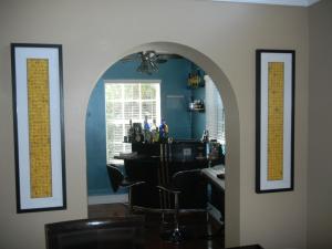 2 Stories 3BR, 2.5BA, 2CG on cul-de-sac w/fenced yard on a large lot, small creek in back yard. Eat-in Kitchen with wood cabinets and granite. French doors in dining area lead to covered screen patio. Crown molding and display shelves. Former porch with arches converted into a quaint study area. High vaulted ceilings in living room. Downstairs master bedroom with wood floors and sliders overlooking the back yard with its own private Master bathroom with dual sinks, roman tub, separate shower and an oversize walk in closet. Upstairs are two large bedrooms, The Fountain will not convey.