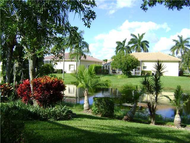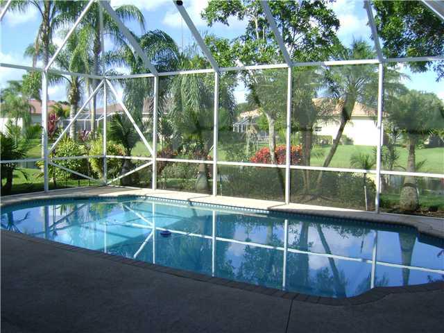 Meticulously maint. home on lushly landscaped canal lot across from community passive park! Low HOA fee $220 semi-annually! Granite kitchen counters, tile in ent. areas & laminate in B/R, new 5-ton "Carrier" A/C, 3-way split B/R plan, alarm w/motion detec tors & impact discrim! Den is the 5th B/R w/o closet. Invisible fence, filtration system as-is, heated scr. encl. Diamond Brite pool w/Kreepy Krawly. Large private backyard with room for swing-set or trampoline! Accordian hurricane shutters! Easy to show!